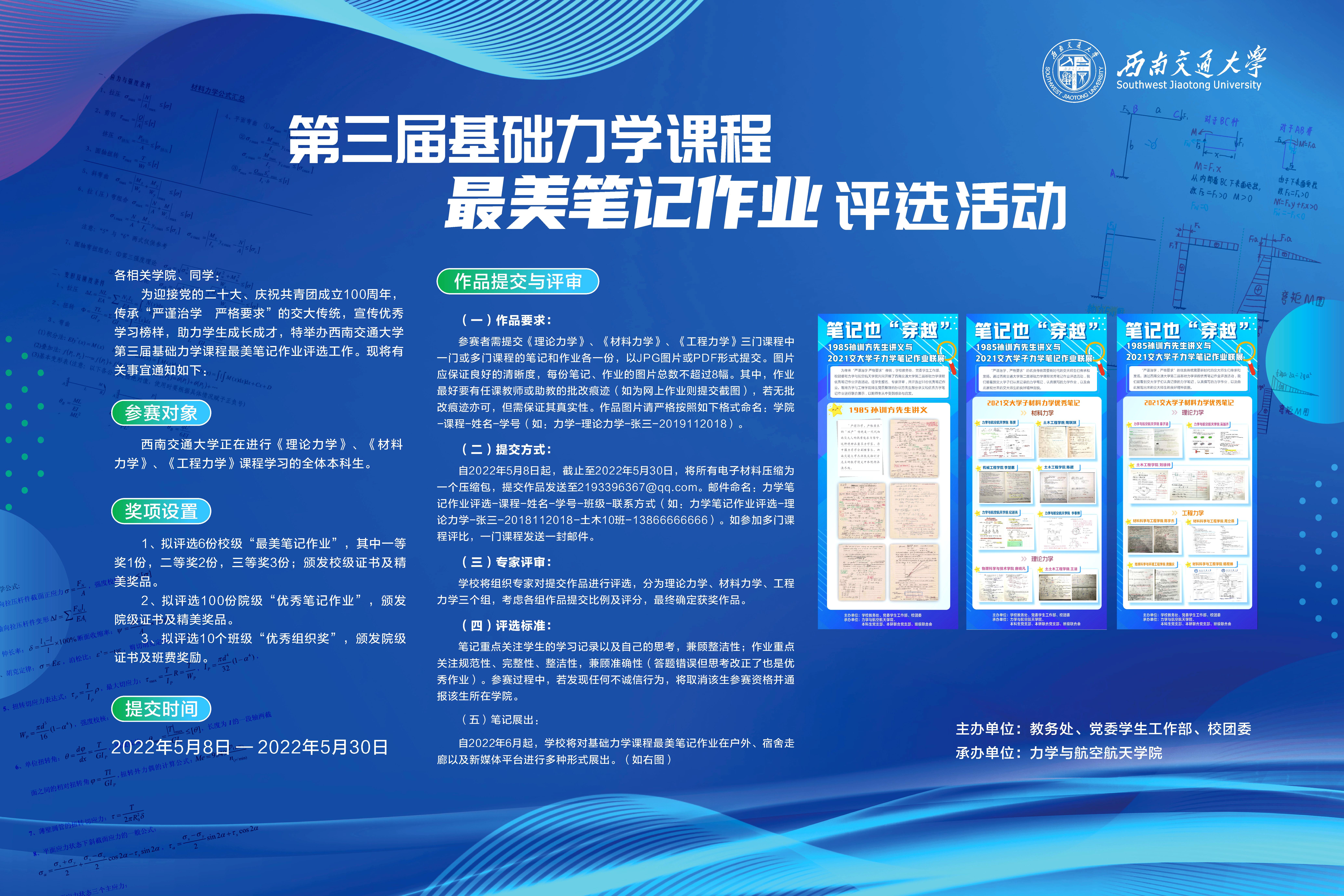 第三届基础力学课程最美笔记作业评选工作。现将有关事宜通知如下: