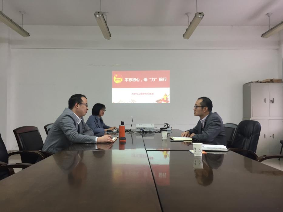 12月1日下午16时,校团委廖军书记、组织部长李娜老师一行来力学与工程学院就学院团委工作进行调研。学院党委张军琪副书记、学院团委副书记、本科生辅导员杨婧老师参加了调研。