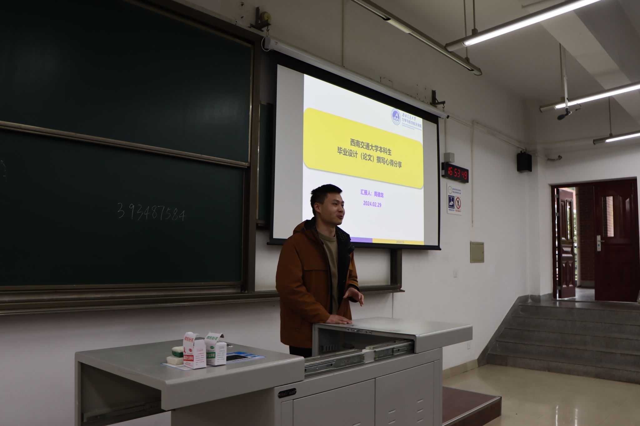周德龙同学以“本科毕业论文撰写心得分享”为题,以生动活泼的形式为同学们分享了撰写论文过程中的常用软件、写作心得、毕业答辩ppt的制作和汇报心得。