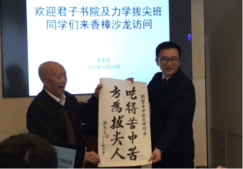 10月20日下午,力学拔尖班名誉班主任聘任仪式暨沈志云院士报告会在峨眉校区沈志云院士家中举行,中国科学院院士、中国工程院院士沈志云受聘成为力学与工程学院力学拔尖班班主任。力学学院副院长、拔尖班首席导师李翔宇,学院党委副书记、拔尖班思想导师孔祥彬,辅导员张容华及2019级力学拔尖班20名同学参加了本次活动。孔祥彬老师主持了聘任仪式,李翔宇教授主持了报告会。