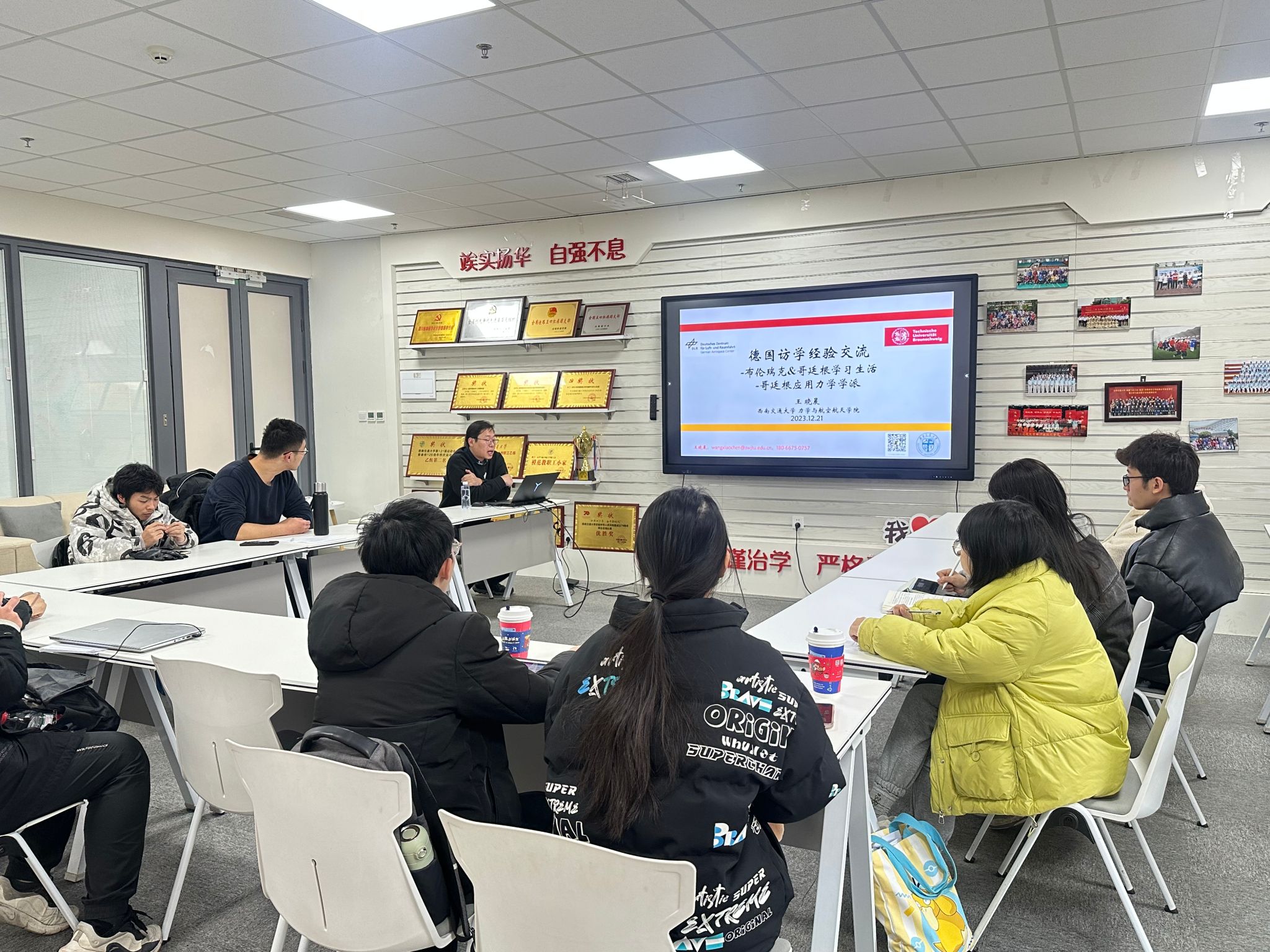 “青年讲师团”成员王晓晨老师为同学们分享他在德国航空航天中心的学习经历和科研经历。辅导员陈蕾及学院10余名同学参加了本次活动。