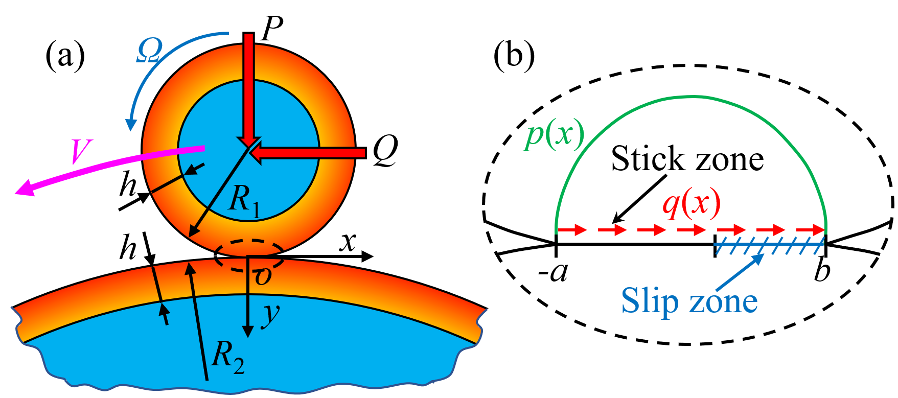 该研究论文以Elastic shakedown analysis of two-dimensional thermo-elastic rolling/sliding contact for a functionally graded coating/substrate structure with arbitrarily varying thermo-elastic properties为题发表在Composite Structures上。博士研究生伏培林为论文第一作者,赵吉中、张旭、康国政和土木工程学院王平教授为共同作者,阚前华教授为本文的通讯作者。课题组长期致力于开发复杂条件下的材料循环塑性本构模型,结合数值分析开展结构的疲劳失效寿命预测,为结构关键零部件的损伤演化和寿命评估提供指导。