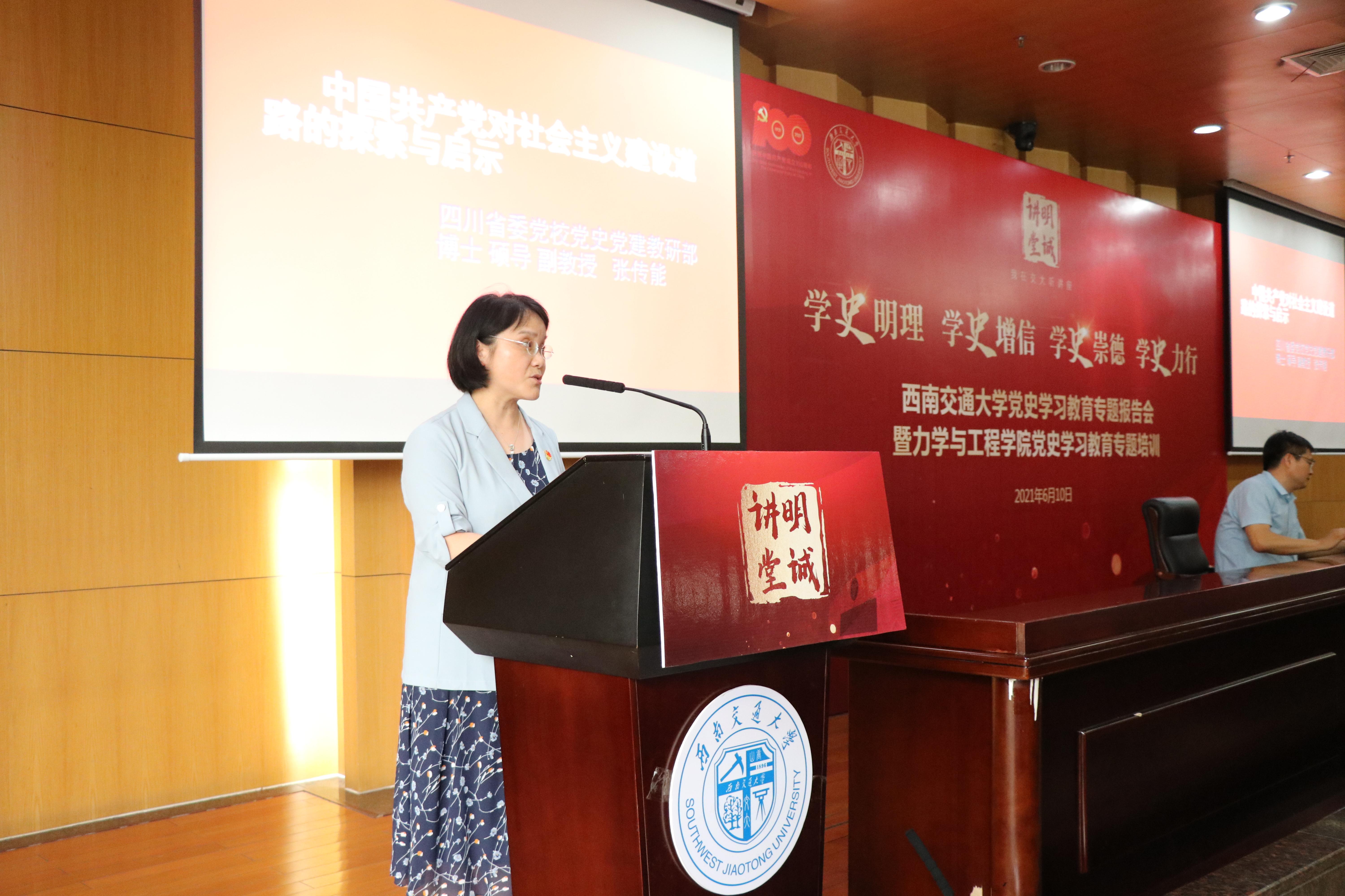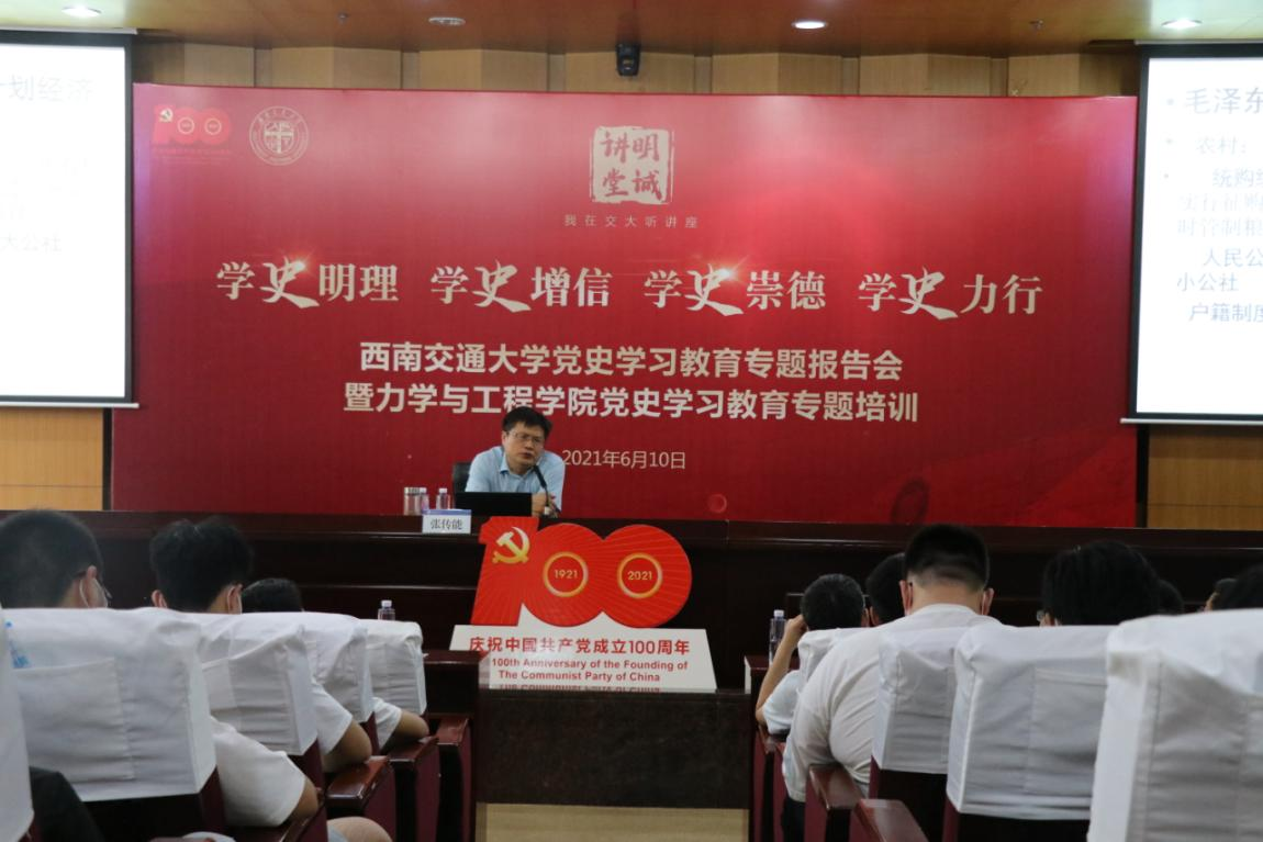 “明诚讲堂”党史学习教育专题报告会暨力学与工程学院党史学习教育专题培训在犀浦校区图书馆第二报告厅举行。中共四川省委党校教授张传能作了专题报告。本次报告会由党委宣传部和力学与工程学院党委联合举办,力学与工程学院党委书记栗民、院长康国政、学院其他领导班子成员、党委委员、各党支部书记及委员、师生近300人参加了此次报告会,学院党委书记栗民主持报告会。