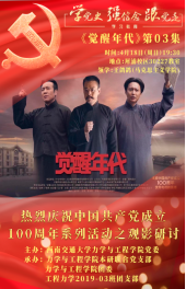 今年是中国共产党成立100周年,为深入学习贯彻习近平总书记在党史学习教育动员大会上的重要讲话精神,根据学校党委《关于开展党史学习教育的实施方案》部署,力学学院党委组织开展了庆祝中国共产党成立100周年观影研讨系列活动,引领力学学子“学史明理、学史增信、学史崇德、学史力行”。