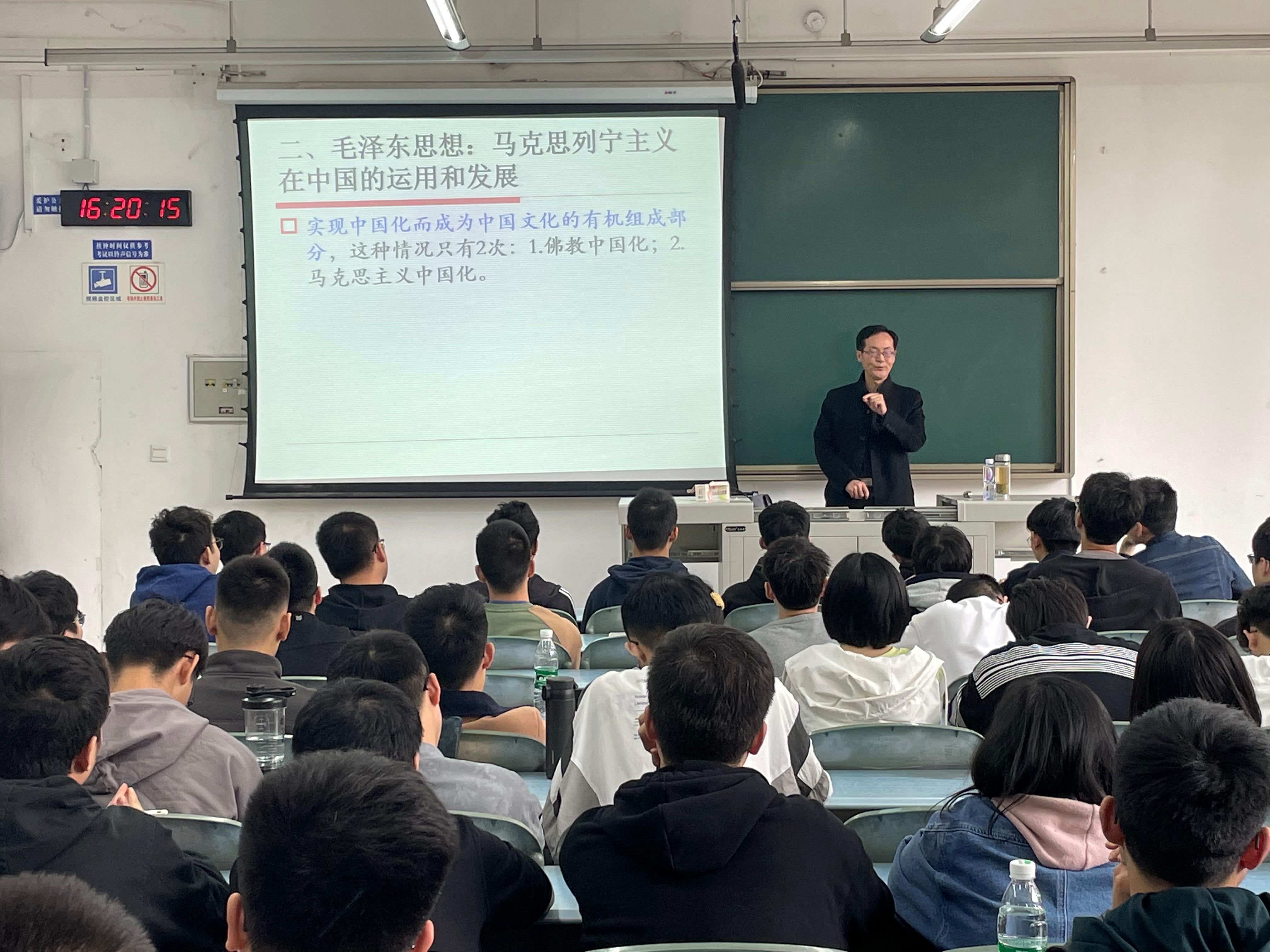 刘占祥教授为同志们讲授了马克思主义中国化有两大成果:一是毛泽东思想;二是中国特色社会主义理论体系。毛泽东思想活的灵魂有三个方面:实事求是、独立自主、群众路线。中国特色社会主义理论体系是指导党和人民实现中华民族伟大复兴的正确理论。刘教授对同志们讲,党章中通常定义了“两个一百年”。1840年到1949年之前,中国签订了一系列不平等条约,经历了“百年沉沦”;1949年到2049年,是中国大力在经济、政治、文化等方面建设,是“百年复兴”。刘教授特别提到了邓小平主席来麻豆做爱