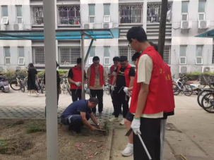 青年志愿者协会联合后勤保障部公寓管理与服务中心于天佑斋16号公寓前开展麦冬栽种活动。