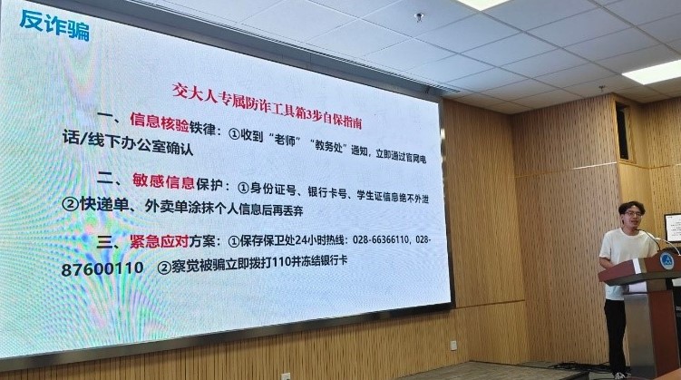 公众号、主题班会、走访工作间等形式,开展校园安全、反诈教育,对新生同学在校园生活中可能遇到的安全问题进行预防和警示,做好新生防火、防盗、防骗、防踩踏、防交通安全事故、防校园贷、防心理疾病等具体安全工作教育,不断提高学生的安全意识,筑牢安全防线,做好校园安全稳定保障工作。