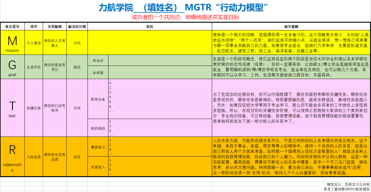 新生导引课布置MGTR模型帮助新生理清生涯目标