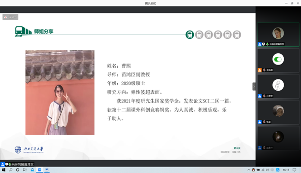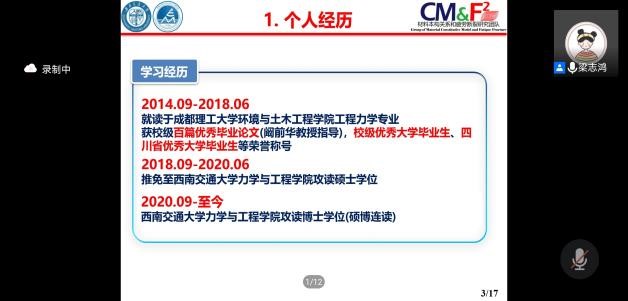 首先,2020级博士生梁志鸿围绕“只要认真做好一篇论文就会收获很多”的主题,依次从个人经历、综合表现、科学研究和取得成果四个方面分享了自身多年以来的科研经验,告诫大家研究生一年级需要静下心夯实基础,认真学习专业课程,保持自律,为科研打下基础。